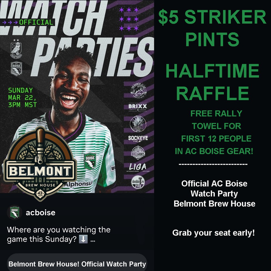 Catch every AC Boise match at Belmont Brew House, an Official Watch Party location in Garden City. We’re bringing the full game day experience with a high-energy crowd, multiple screens, and 43 taps of craft beer ready to pour.
